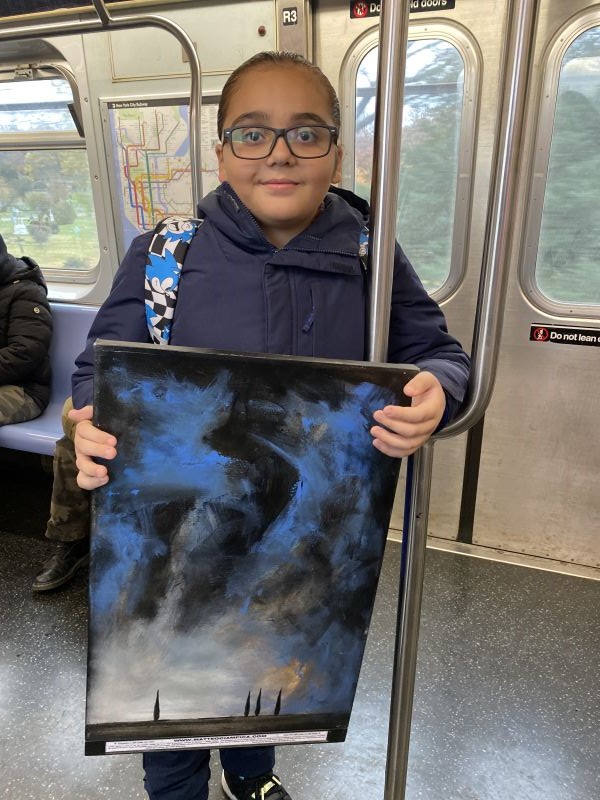My son and I were running to the Wilson Street train station and I saw the painting leaning up against the school wall with beautiful fall leaves laying in-front of it. I just couldn’t help but be drawin to it. I will be carrying this painting all the way to work & protecting it so it can be brought home safely. Thank you for spreading your art.