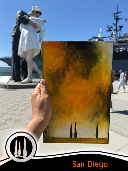 More and more people are transporting my artworks from one city to another, traveling together all over the world. More and more people are writing to tell me about their emotions. In doing so, they become witnesses of a rediscovered time, an opportune time that generates solidarity and dialogue between human beings. Your testimony tells of an art rooted in existence, which permeates everyday life. Your participation expresses the need to find oneself in small gestures, in a brief understanding between strangers, in a simple painting to share. Your actions transform my art into an affirmation of life, into a critical presence in the world. Overcoming is built in interaction. Thank you for participating in my initiatives, your testimonies are the greatest reward for me. Thus, even my time in this world acquires a small meaning. Thank you again.